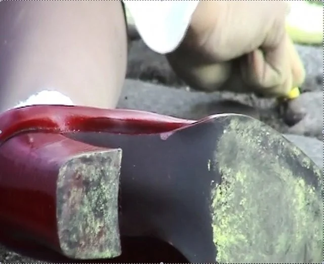 Crush video series probes fetish and femme dominance as a miniature domestic scene is annihilated by ominous heels while the breathing of the invisible camera person is can be heard.